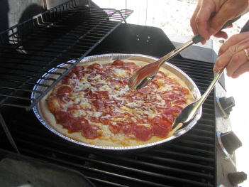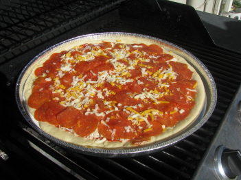 pizza, it isn't going to be on the grill long enough to cook meat thoroughly.