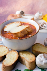 *Another yummy option is to melt mozzarella cheese on a slice of baked French bread and serve the soup with the bread on top of the soup (see picture above). Either way, you can't go wrong!